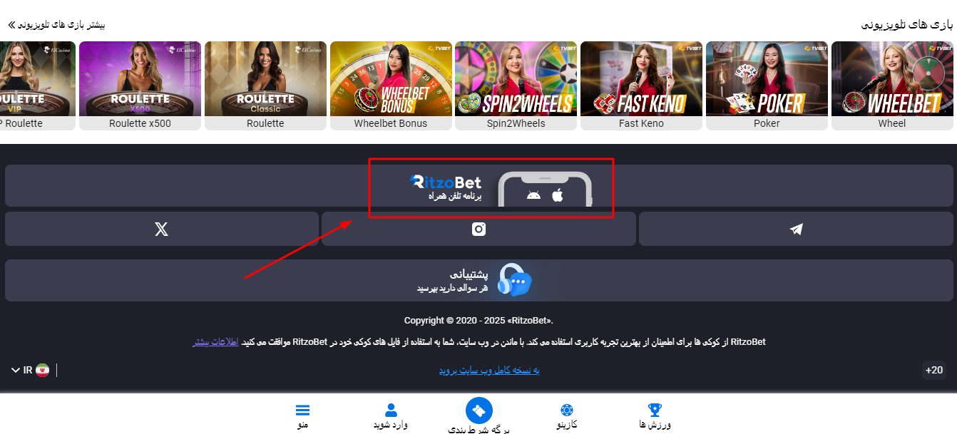 بهتر است فقط از لینک های رسمی سایت Ritzo Bet استفاده شود تا نسخه اصلی دریافت گردد.